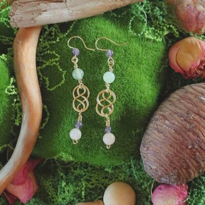 Boucles d’oreilles Unalome en cuivre et opalite – “Xarahb”