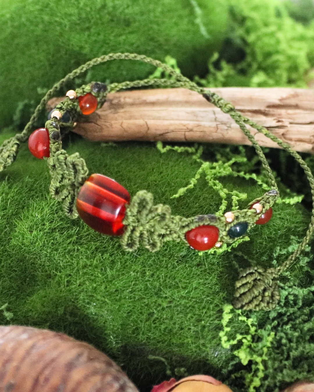 Ce bracelet en mue de serpent, tissé à la main en macramé, est une pièce vibrante et pleine de sens.
