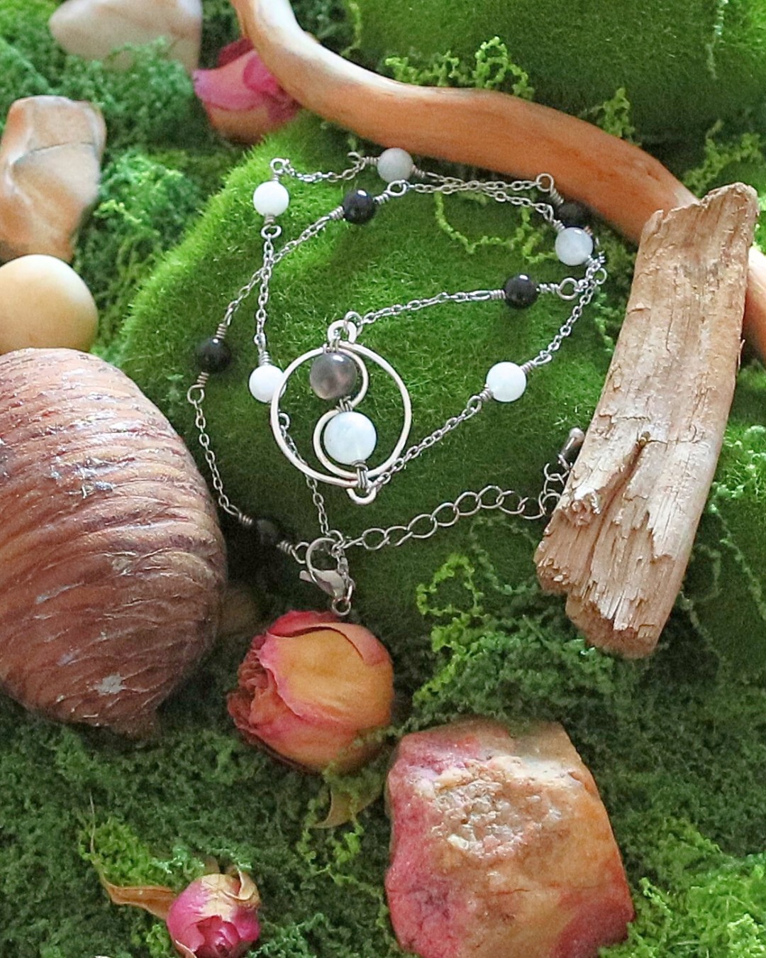 Collier pierre de lune et obsidienne “Hyn Hyang”