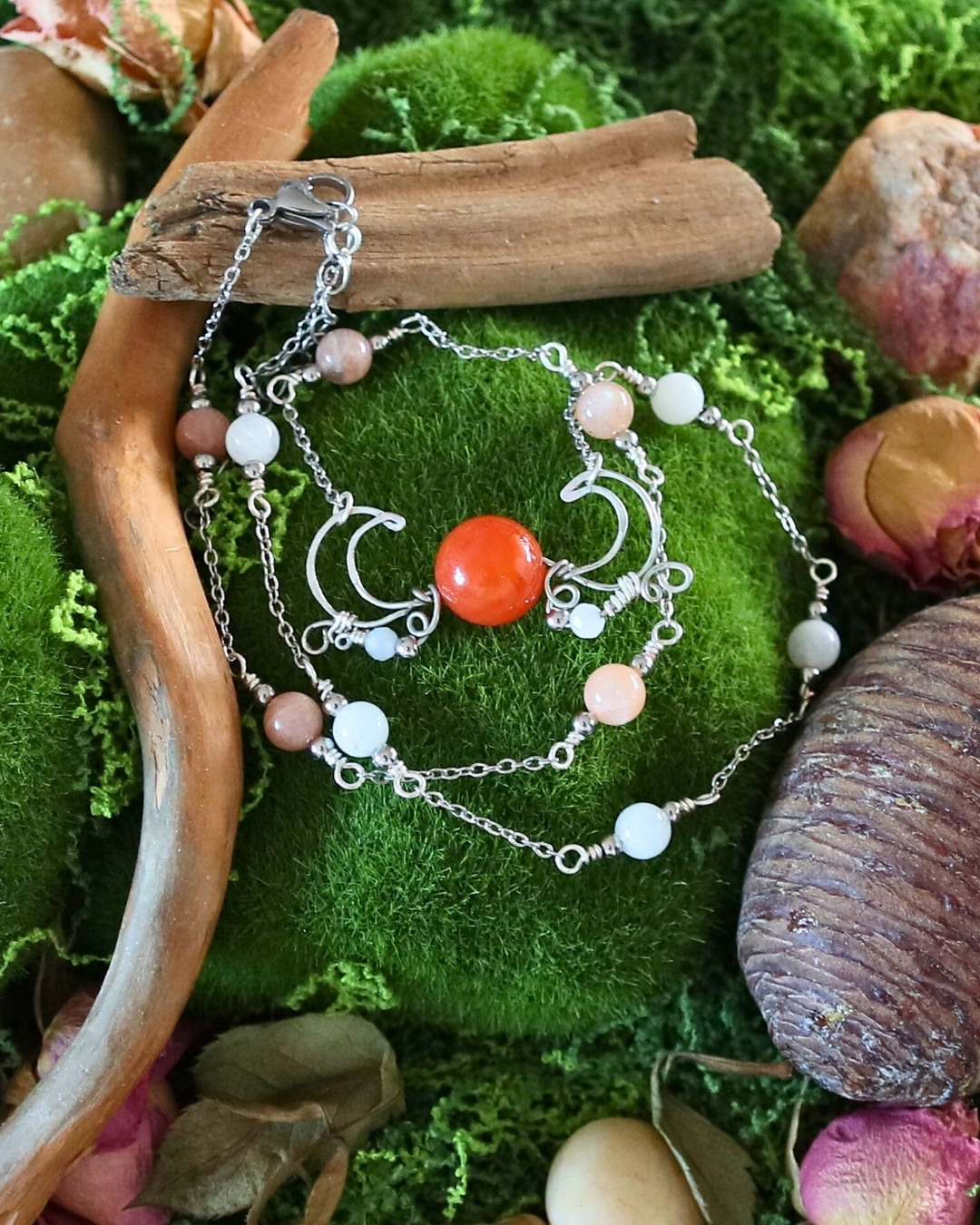 Pierres : cornaline, pierre de lune, pierre du soleil